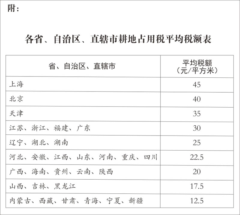 • 图表:各省、自治区、直辖市耕地占用税平均税额表