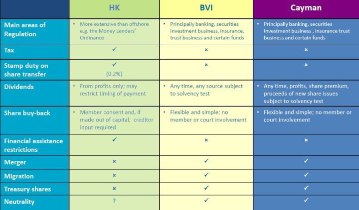 注意:虽然BVI公司条件更好,但是对于BVI设立的公司,其股东信息保密,每年无需做审计报告,是无法通过上市监管的,在这种下,一般企业会选择监管更加严格,但是又无税收的开曼公司作为海外上市主体。除此之外,将上市主体设立在开曼公司,是因为目前香港只允许注册地在香港、中国、百慕大、开曼这四地公司在港上市。