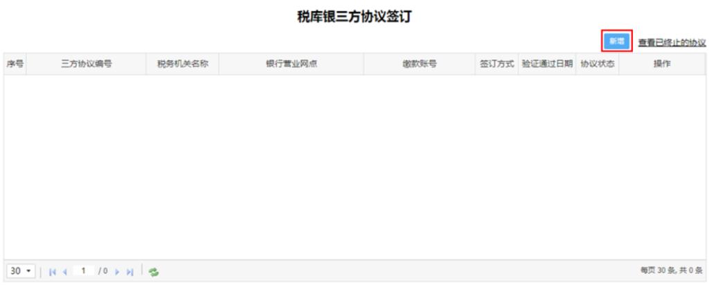 点击“新增”按钮,进入税库银三方协议申请界面,税务机关名称”选择对应的主管税务机关,注意签订三方协议的税务机关名称必须与您缴款的税务机关名称一致,否则将无法对应到申报缴税信息。网上办理仅支持居民身份证。录入正确的开户银行信息。“确认无误后,点击“提交”按钮。