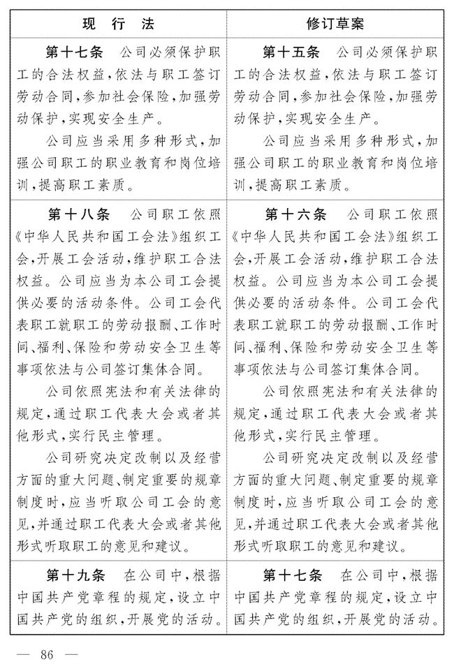 同时,修订草案继续坚持现行公司法关于在各类型公司中根据党章规定设立党的组织,开展党的活动,公司应当为党组织的活动提供必要条件等规定。(修订草案第十七条)