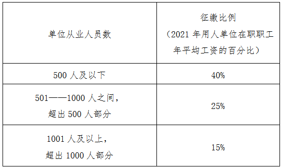 设置保障金征收标准上限。用人单位在职职工年平均工资未超过当地社会平均工资2倍(含)的,按用人单位在职职工年平均工资计征保障金;超过当地社会平均工资2倍的,按当地社会平均工资2倍计征保障金。