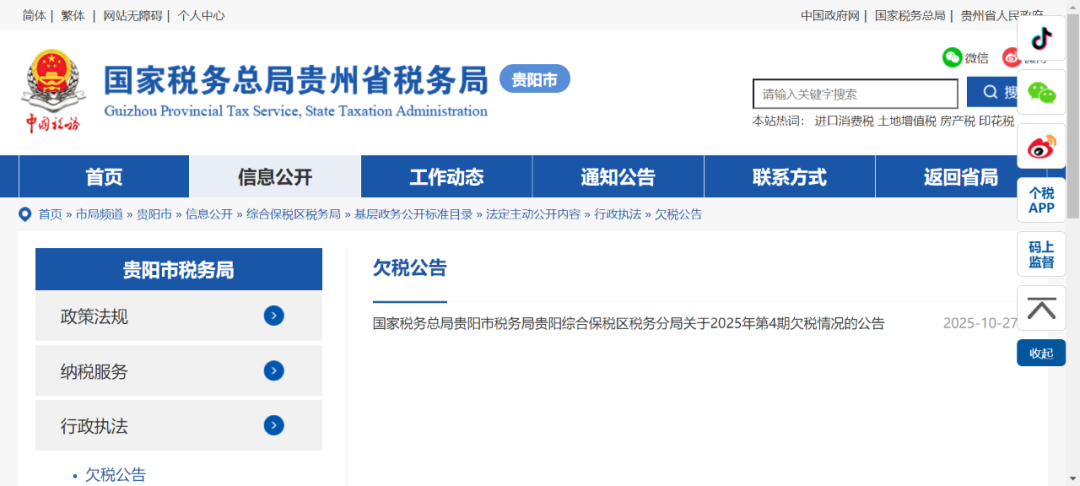 如何查询欠税公告:一般在税务局官方网站的:信息公开栏