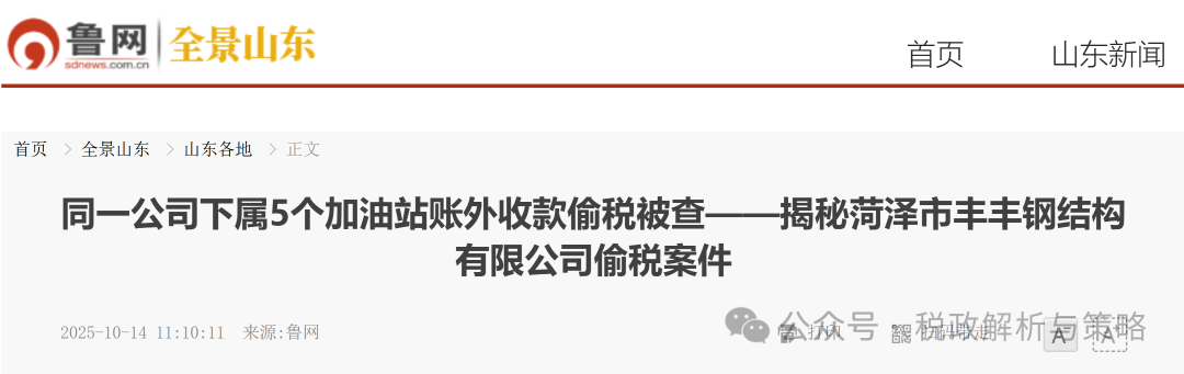 菏泽市税务局第一稽查局根据税收大数据分析发现,菏泽市丰丰钢结构有限公司发票数据与运单数据不匹配,危化品货物运单信息显示该公司下属加油站有卸油记录,却未取得相应的进项发票,可能存在账外循环偷逃税款的嫌疑。
