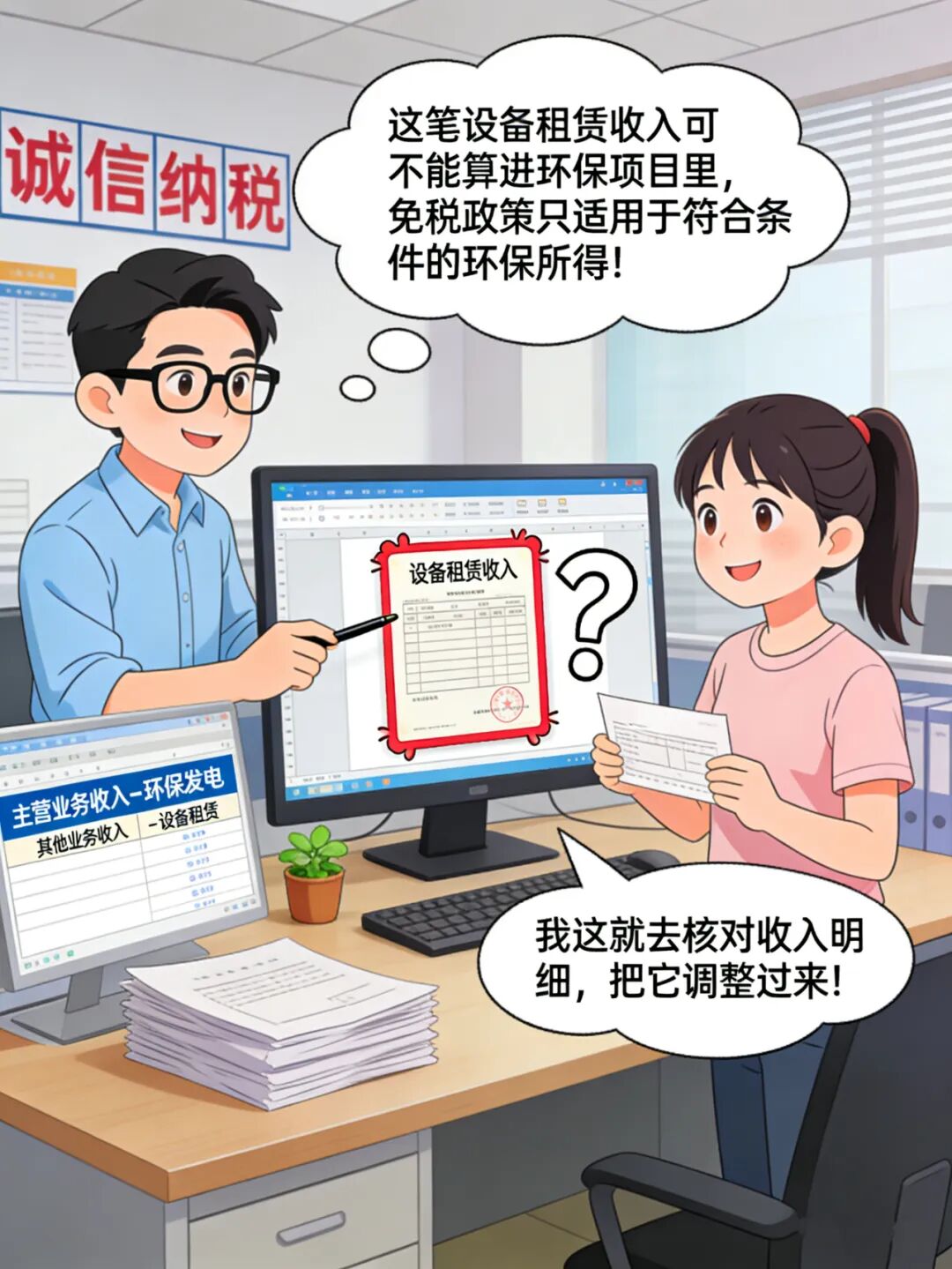 企业在生产经营过程中对取得的环保项目所得可享受免征政策,但是企业将其他项目取得所得也一并计入环保项目所得错误享受税收优惠政策,影响当期应纳税所得额,产生补缴税款的税务风险。
