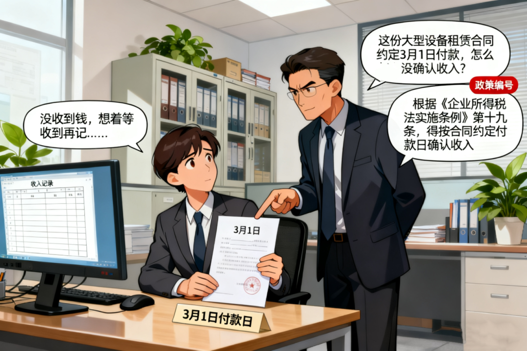 合同约定租金付款日的,企业可能会不及时确认这笔收入,从而产生少计收入,少缴税款的风险。
