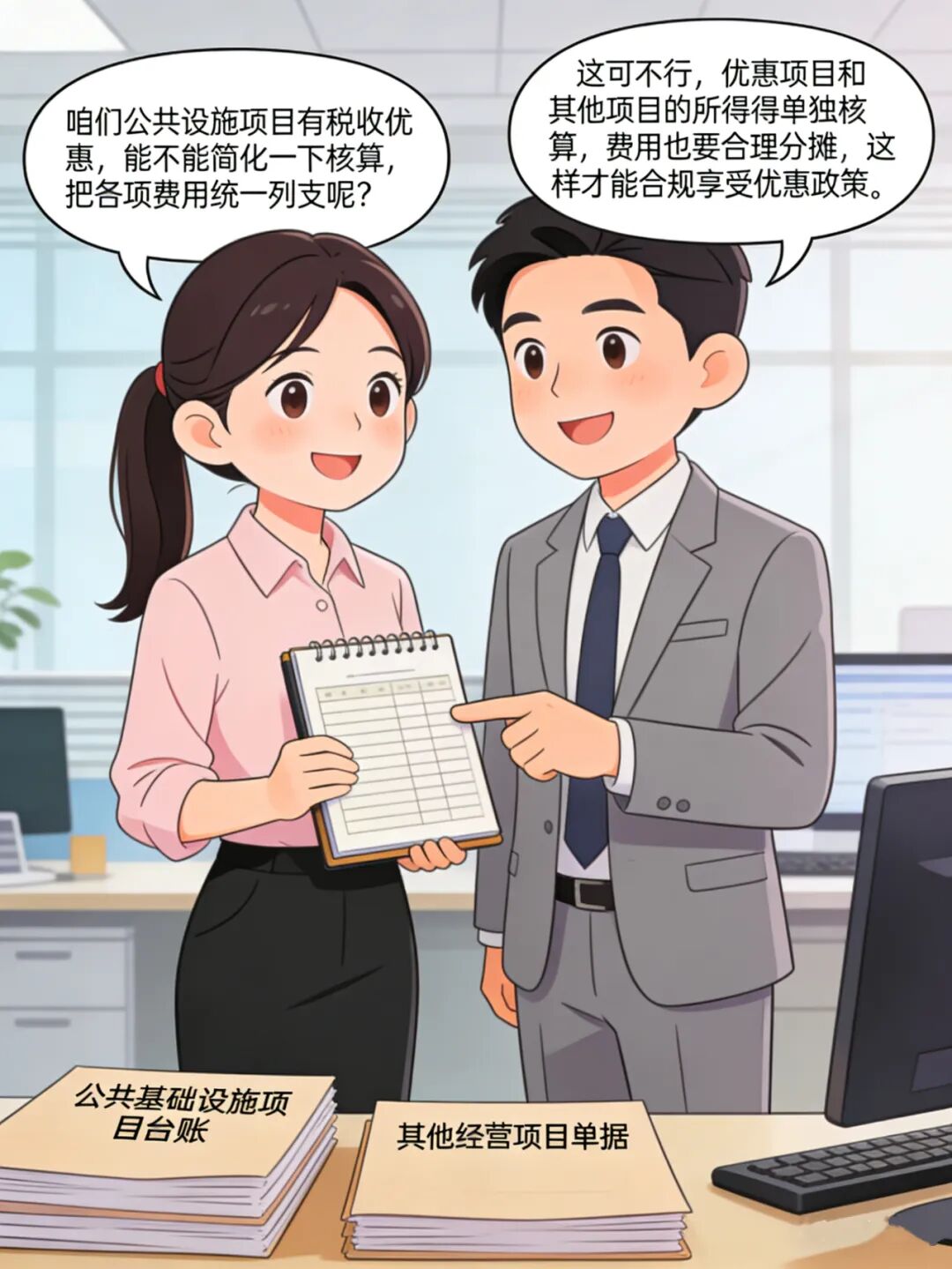 六、企业同时从事不在《目录》范围的生产经营项目取得的所得,应与享受优惠的公共基础设施项目经营所得分开核算,并合理分摊企业的期间共同费用;没有单独核算的,不得享受上述企业所得税优惠。