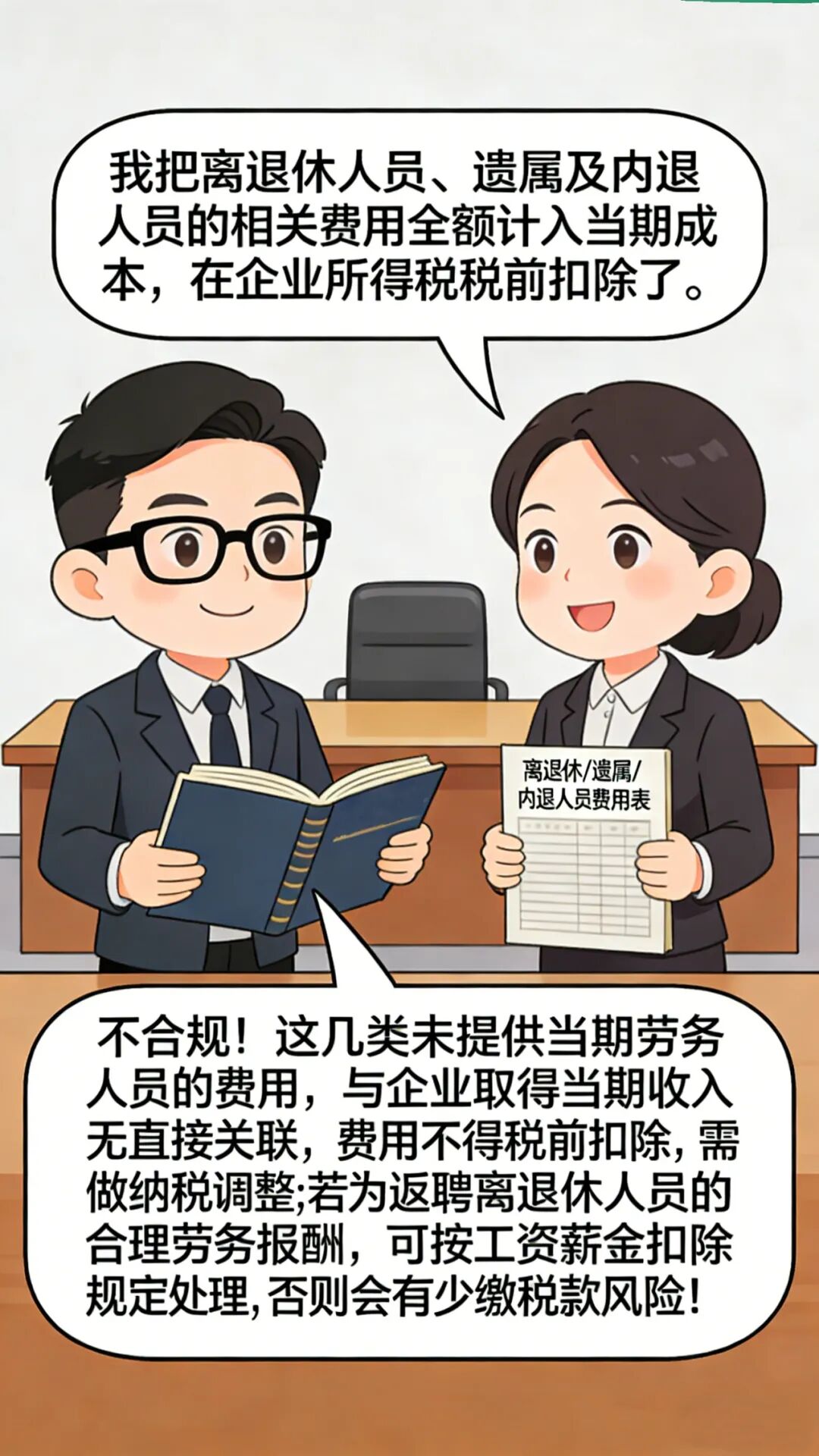 根据企业所得税规定,企业支付的离退休职工统筹外退休津贴、统筹外费用,不属于与取得收入直接相关的支出,不能在企业所得税前直接扣除。企业向离退休、遗属、内退和下岗人员(简称三类人员费用)支付各种费用全额在税前扣除,未做纳税调整,少缴了所得税。