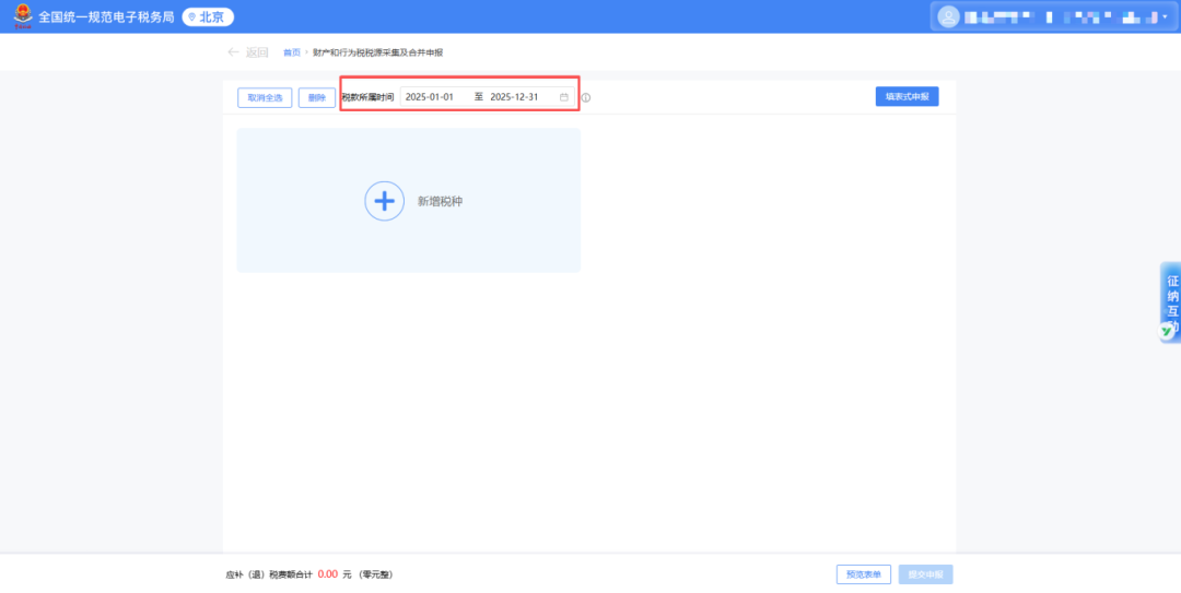 选择税款所属期“2025-01-01至2025-12-31”。