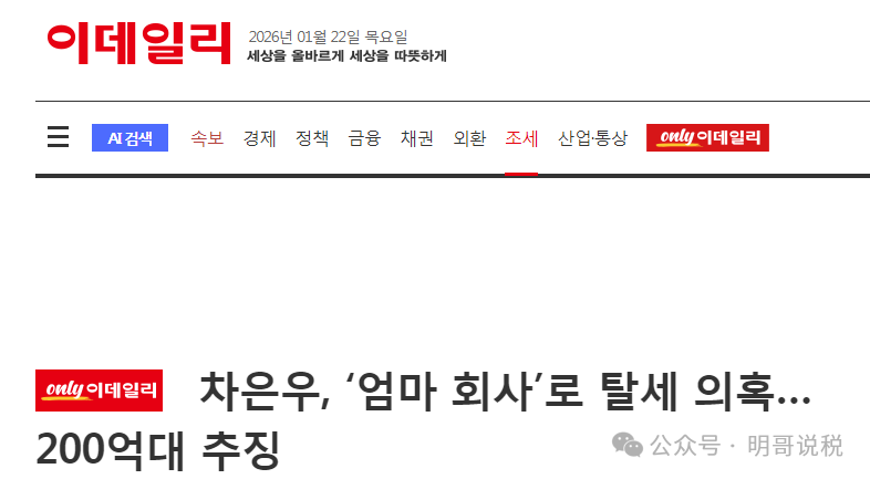 韩国国税厅拒绝承认A公司的身份,而A公司与Fantagio公司和车银优之间存在关联,调查范围扩大至Fantagio和车银优。正因如此,首尔国税厅于去年8月对Fantagio处以82亿韩元的罚款。韩国国税厅认定Fantagio应对A公司 "虚假税务发票"的处理负责,并对其追加了包括增值税在内的税款。Fantagio对此提出了税务评估复核申请,结果并未改变。
