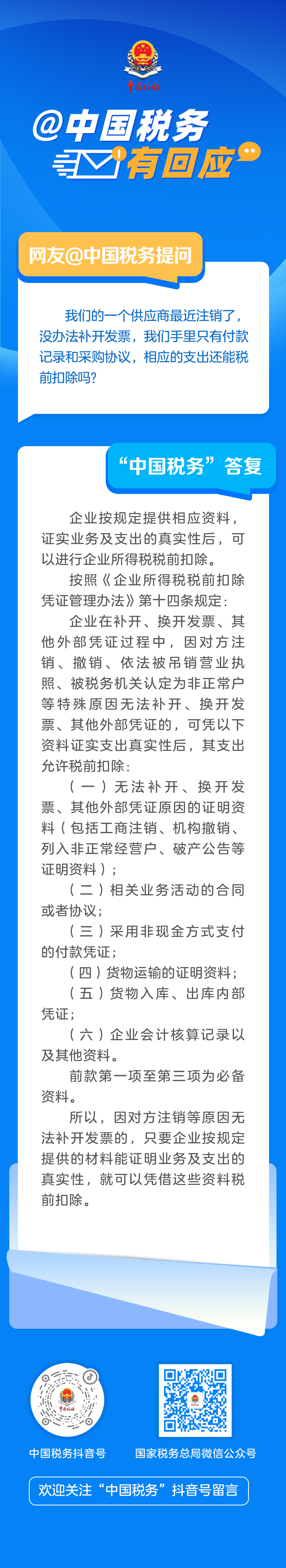 供应商注销无法补开发票 相应支出如何税前扣除?