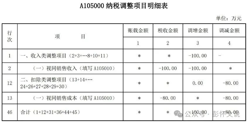 有人对这类会计上不满足收入确认条件的直接通过《A105000纳税调整项目明细表》的“收入类调整项目”和“扣除类调整项目”的“其他”项目进行调整,而不通过《A105010视同销售和房地产开发企业特定业务纳税调整明细表》的“视同销售”的“其他”项目调整。