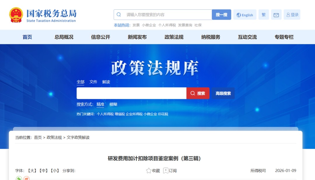 总局发布第三辑研发费用加计扣除项目鉴定案例