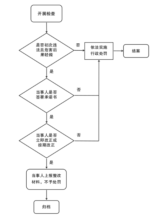 (二)严格规范适用程序。发现违法行为线索后,相关执法机构应当按照有关规定开展检查、调查。符合免罚条件的,由执法机构指出当事人违法行为的事实、性质、情节、可能造成的危害后果等,并提出具体整改要求。当事人对相关情况确认无误后,自愿签署整改承诺书。执法机构应当在合理时间内核查整改情况,对于当事人未在承诺期限内整改到位并提交整改情况说明等证明材料的,根据核查情况依法实施行政处罚或依法采取必要措施。