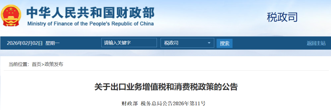 近期,财政部、国家税务总局发布《关于出口业务增值税和消费税政策》(财政部 税务总局公告2026年第11号)。从立法层级来看,11号公告与《增值税法》《增值税法实施条例》关于出口货物、跨境销售服务、无形资产相关规定相衔接,对具体规则加以细化,形成出口退(免)税的具体操作办法。从政策内容来看,11号公告基本延续了现行出口退(免)税的相关制度,将《财政部 国家税务总局关于出口货物劳务增值税和消费税政策的通知》(财税〔2012〕39号,现已失效)与《关于全面推开营业税改征增值税试点的通知》(财税〔2016〕36号)附件 4《跨境应税行为适用增值税零税率和免税政策的规定》进行整合,将出口货物、跨境销售服务、无形资产统一纳入到出口业务中予以规定,大幅提升出口业务退(免)税规则的清晰度与适用性。相较于旧规则,新规则主要发生五大变化,作简要分析如下: