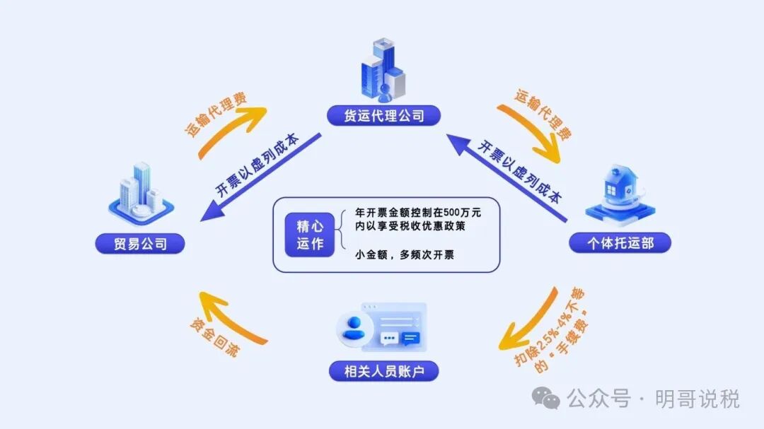 原来,办税人员孟凡蕊在长期从事税务代理的过程中,了解到部分贸易公司需要成本入账,高报贸易额从而取得财政补贴。在利益驱使下,本应依法诚信执业的她伙同薛磊通过购买他人身份信息的方式,成立了多个货运代理公司,为有开票需求的贸易公司虚开发票,并按虚开金额扣除2.5%-4%不等的手续费攫取非法利益。为解决货物代理公司成本问题,他们又成立个体托运部,向货物代理公司开具增值税普通发票以虚列成本,以此来达到少缴税款的目的。