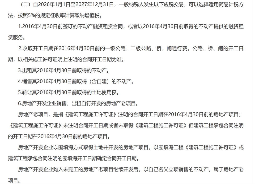 1. 5% 的适用范围(仅限特定老项目,2026.1.1-2027.12.31)