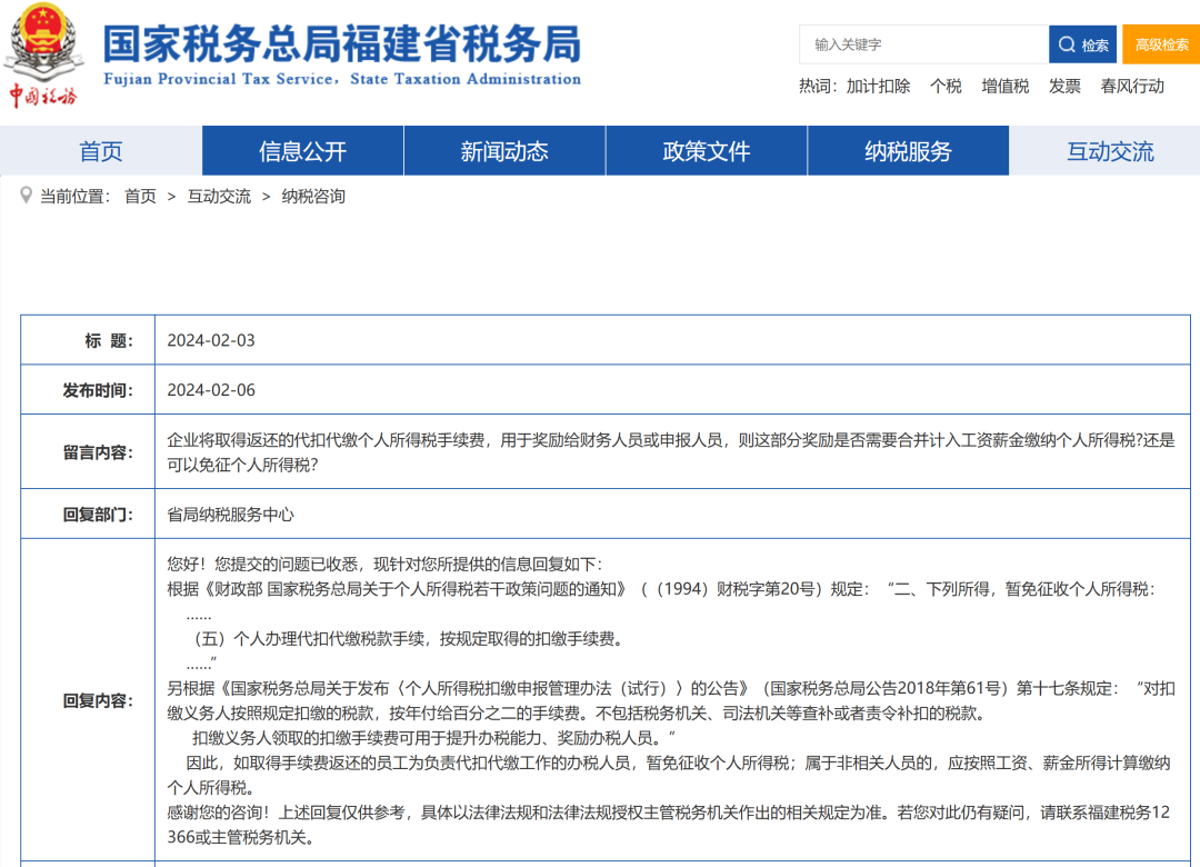 问题六:我们公司收到返还的个税手续费奖励给公司办税人员,要缴个税吗?