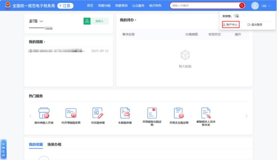 为保障业务顺利开展,请您以“自然人业务”登录电子税务局,进入 【账户中心】-【个人信息管理】-【手机号码修改】模块中添加本人使用手机号码。