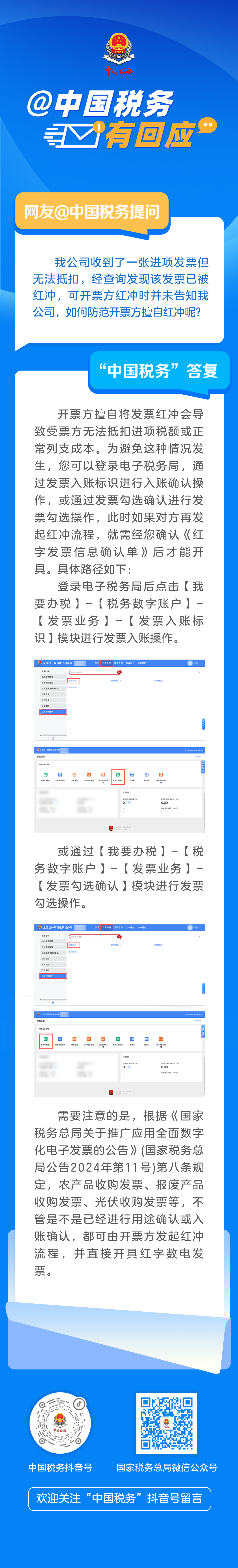 为做好税费政策宣传解读,及时回应纳税人缴费人关切,我们依托官方抖音号“中国税务”,推出了“@中国税务有回应”栏目,解答纳税人缴费人关心关注的税费问题。
