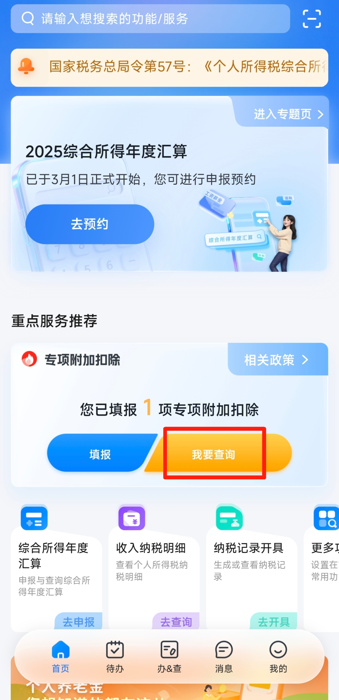 以住房贷款利息为例,点击首页【专项附加扣除】模块的【我要查询】——点击查询扣除年度的“住房贷款利息”专项附加扣除——点击底部【修改】——选择“修改基本信息”。