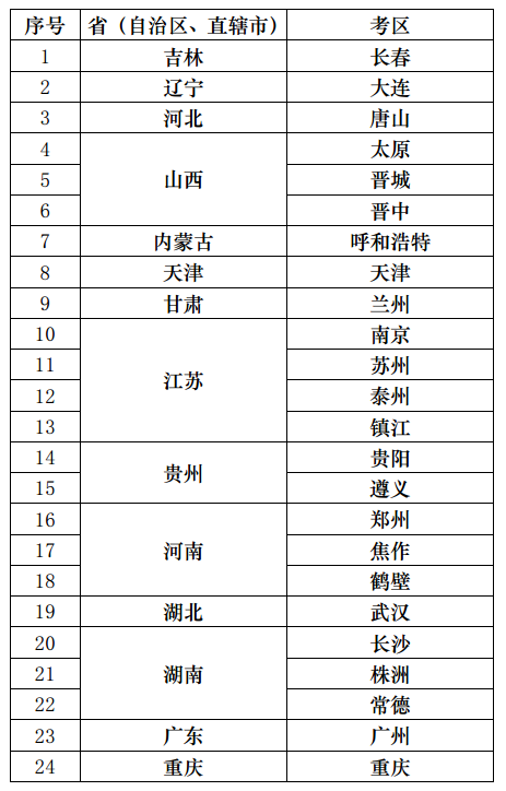 2017年24个需要调整部分考生会计科目考试时间的考区