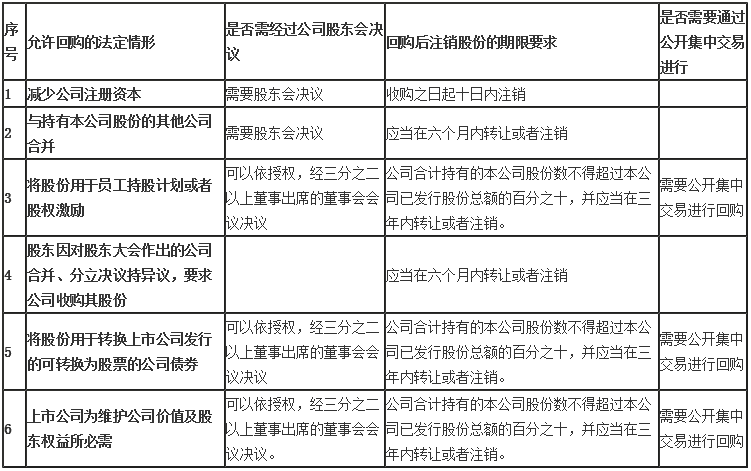 根据此次对《公司法》第142条的规定,对于公司可以收购本公司股份(回购)的具体规定,总结如下: