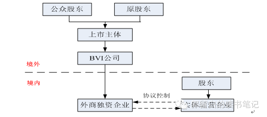第一步先是在BVI或者开曼群岛等地设置个离岸公司(离岸公司一般情况下会有好几层架构,后面会介绍) ,第二步该离岸公司与境内想上市的那个实体公司签订一系列协议(所以VIE又叫协议控制)。