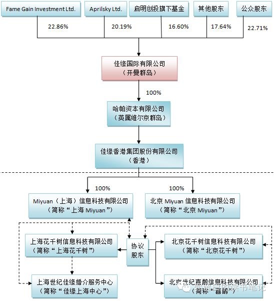 世纪佳缘公司就是典型的双层BVI夹开曼群岛最后一层香港的VIE结构。