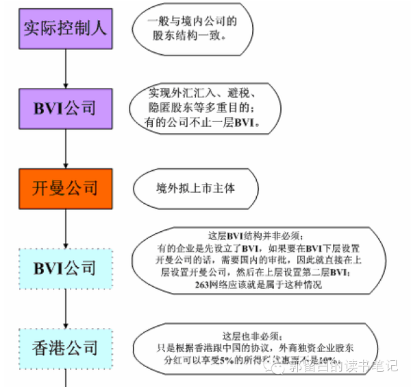 这么多好处那为什么不直接就把离岸公司主体就设在BVI呢?为什么只把他设在第一层呢?好问题!你想,公司股东不知道,每年又没有审计报告,如果你是纳斯达克的监管者你敢让这种公司在你证券交易所上市吗?所以BVI公司下面一般还要设一个注册地在开曼的公司。