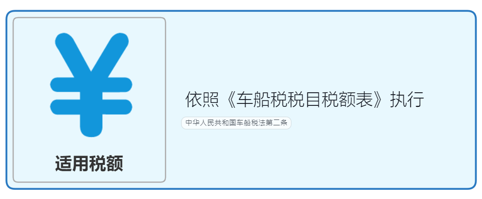 依照《中华人民共和国车船税法》所附《车船税税目税额表》中年基准税额执行。