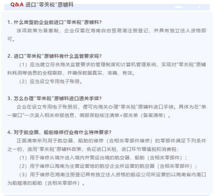 《关于海南自由贸易港原辅料“零关税”政策的通知》