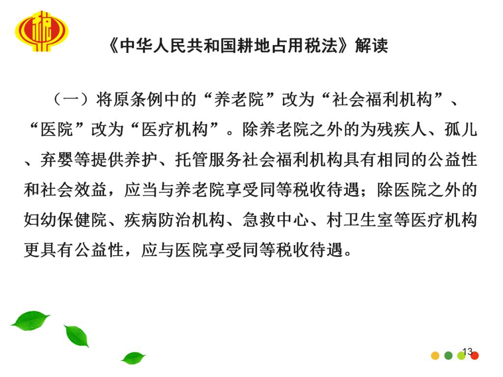 减征项目增加了“水利工程”,水利工程占用耕地,减按每平方米二元的税额征收耕地占用税;