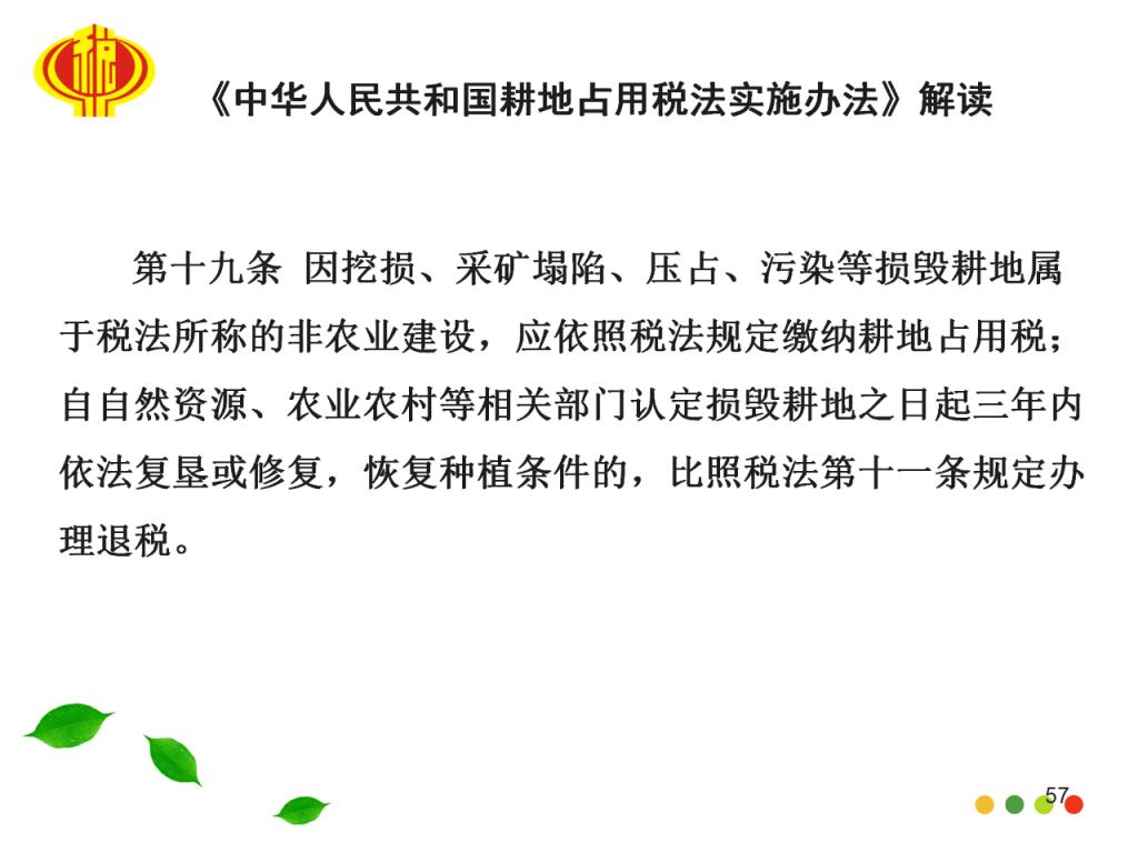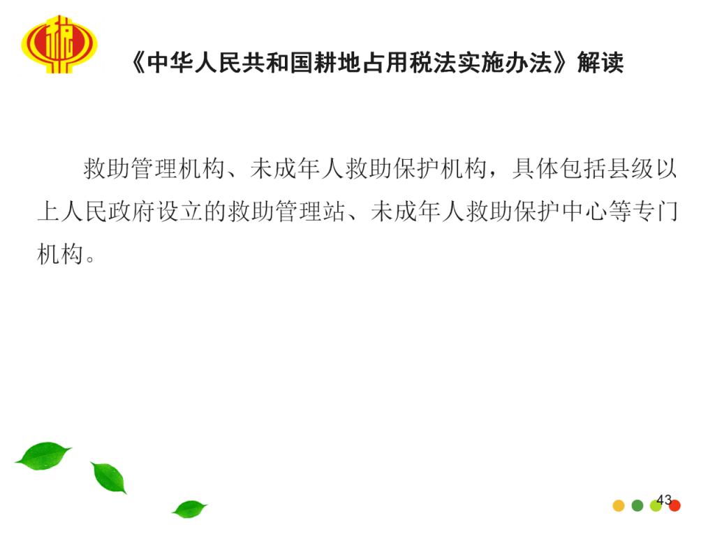 政策依据:《财政部税务总局 自然资源部 农业农村部 生态环境部关于发布<中华人民共和国耕地占用税法实施办法>的公告》(财政部公告2019年第81号)