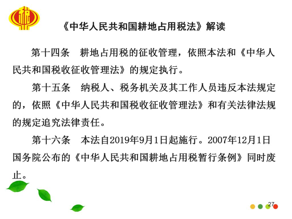 政策依据:《国家税务总局关于耕地占用税征收管理有关事项的公告》(国家税务总局公告2019年第30号)