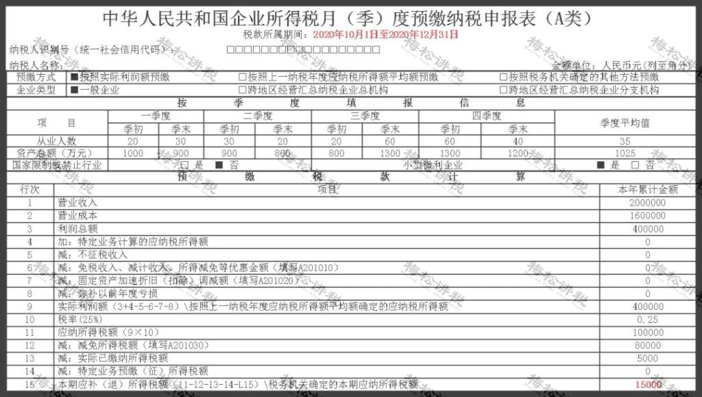 20211月填写2020年第四季度企业所得税月(季)度预缴纳税申报表时,主表的“本年累计金额”按照截止至2020年四季度末的累计数据填写。