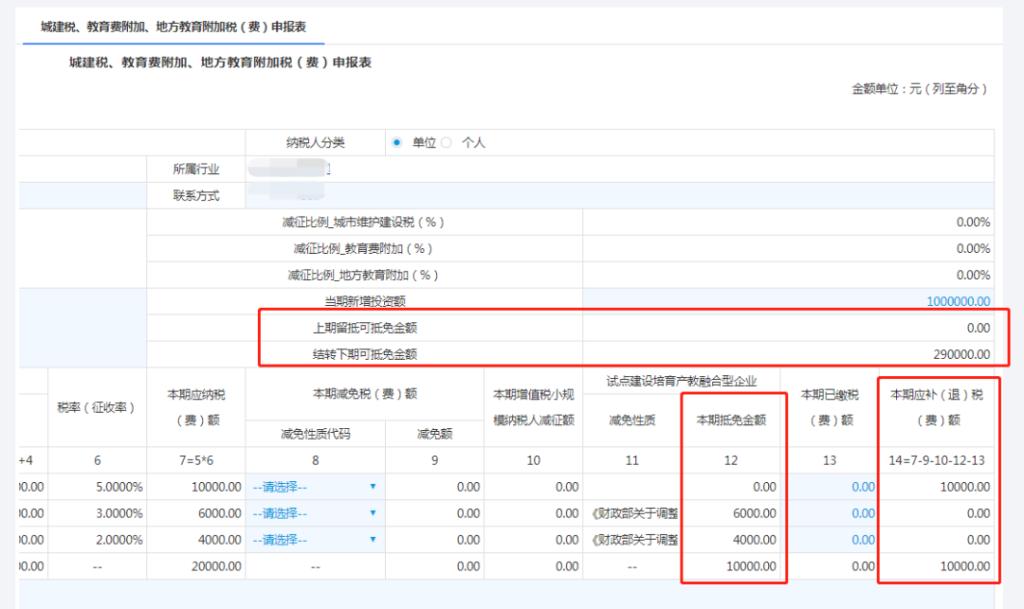 享受抵免需单独填报《城建税、教育费附加、地方教育附加税(费)》,您可以通过电子税务局和eTax申报端自行申报,具体请看下方的电子税务局申报示例~