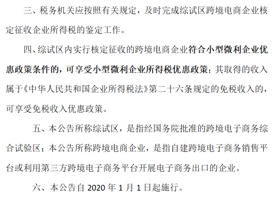 3、综试区内的企业可以办理企业所得税核定征收,根据国家目前规定按照应税所得率4%核定,并且在综试区内实行核定征收的跨境电商企业符合小型微利企业优惠政策条件的,也可享受小型微利企业所得税优惠政策。