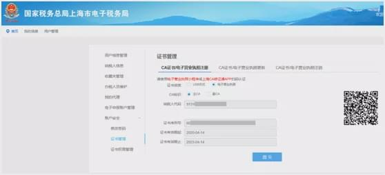 ()电子税务局登录完成以后,选择“我的信息”——“用户管理”——“证书管理”的路径进入CA证书/电子营业执照注册模块,将证书资质栏目选中电子营业执照,并根据企业实际需求确定主副CA