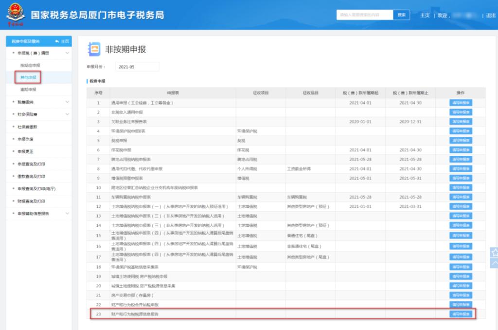 2.1  也可通过【其他申报】-【财产和行为税税源信息报告】模块进行操作: