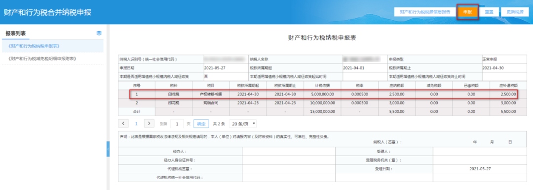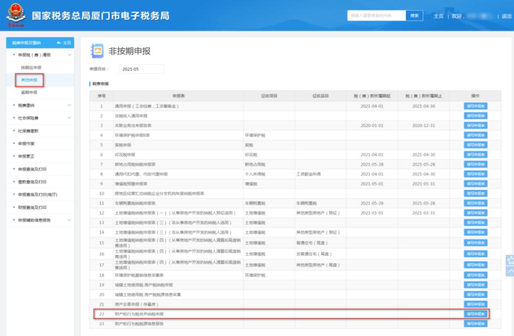 财产和行为税纳税申报操作