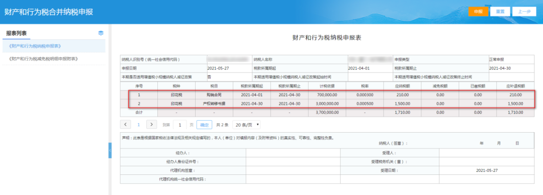 202161日起,纳税人申报缴纳城镇土地使用税、房产税、车船税、印花税、耕地占用税、资源税、土地增值税、契税、环境保护税中一个或多个税种时,使用《财产和行为税纳税申报表》。