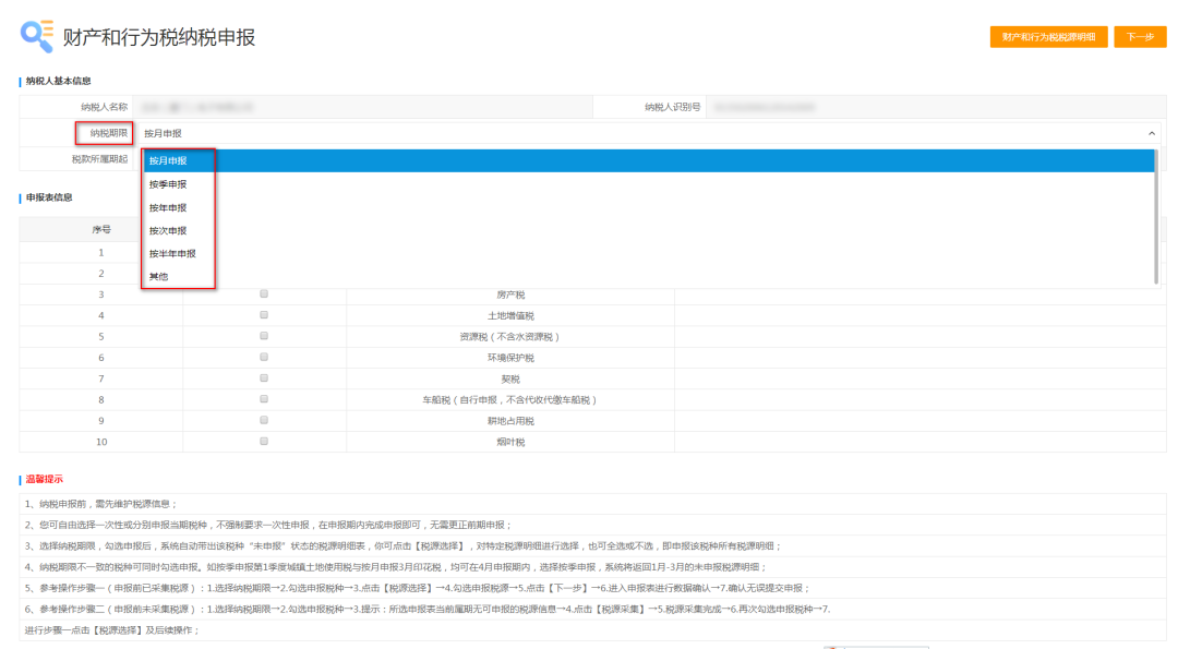 1.不同纳税期限的财产和行为税各税种可以合并申报。