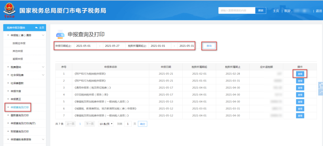 申报查询及打印