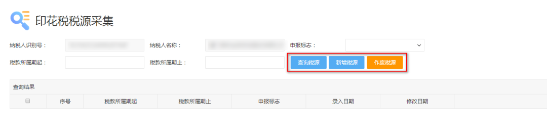 2.3  按照业务需求进行“查询税源”、“新增税源”、“作废税源”等操作:
