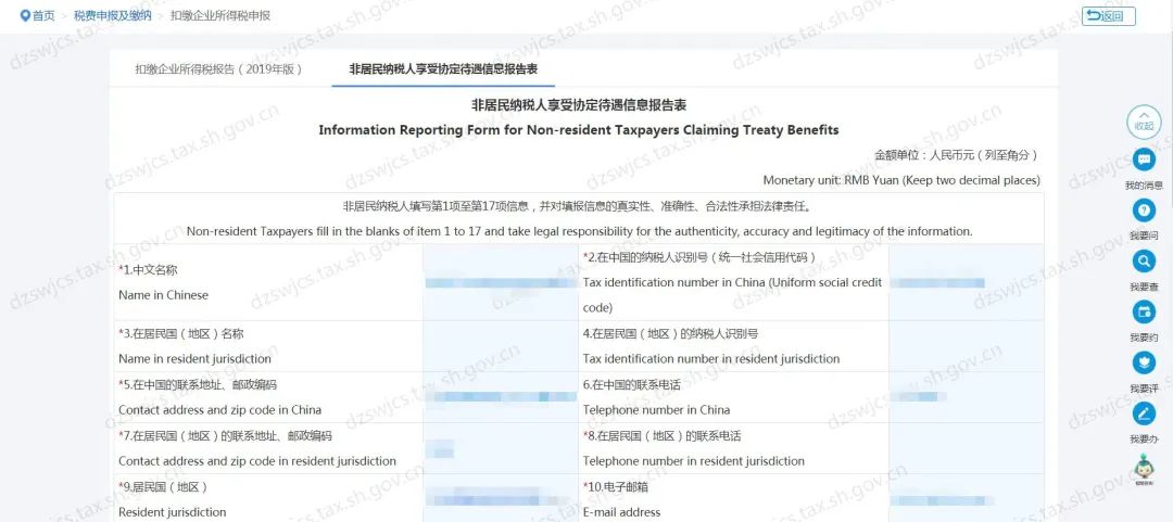 进入非居民享受税收协定待遇办理界面,依照表单要求录入数据。