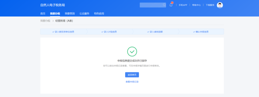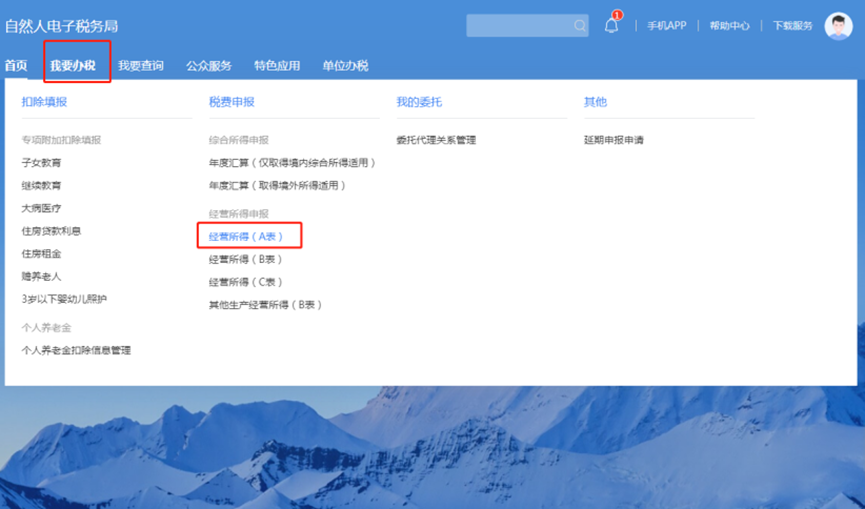 1.点击【我要办税】-【经营所得(A表)】。