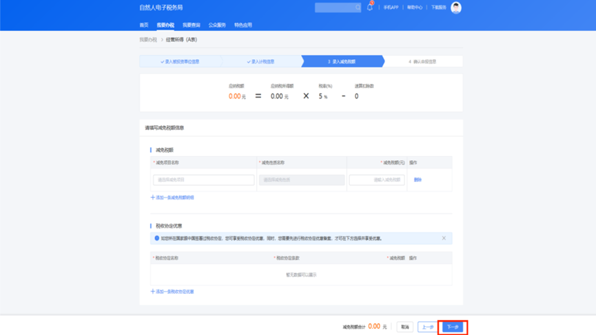 6.选择具体减免项目,确认减免税额无误后点击“下一步”。