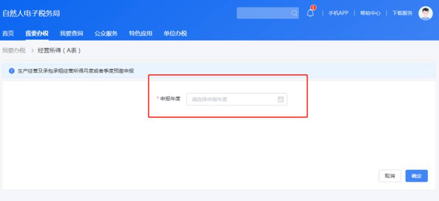 2.选择申报年度,点击“确定”。
