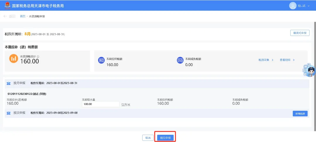 “本期取水量”通过信息共享可以获取的可直接点击【提交申报】;无法获取的,可在“本期取水量”进行数据录入后再点击【提交申报】。