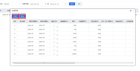 您可以点击“打印”按钮,直接打印社会保险费申报表。若您需要下载,可以点击“导出”按钮,即可导出社会保险费缴费申报表(pdf格式),下载后也可以打印。